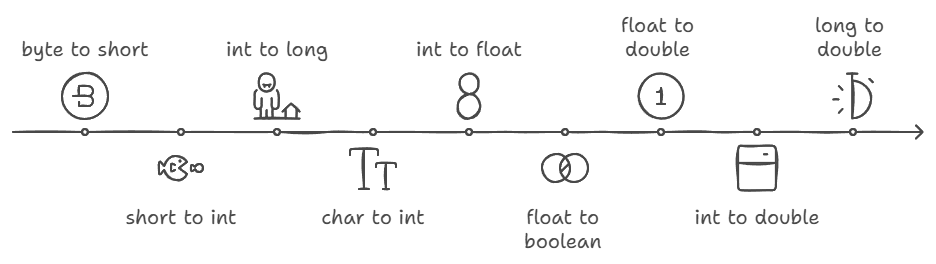 데이터의 손실이 발생하지 않기 때문에 안전하게 변환이 가능하고, 명시적으로 캐스팅하지 않아도 된다.